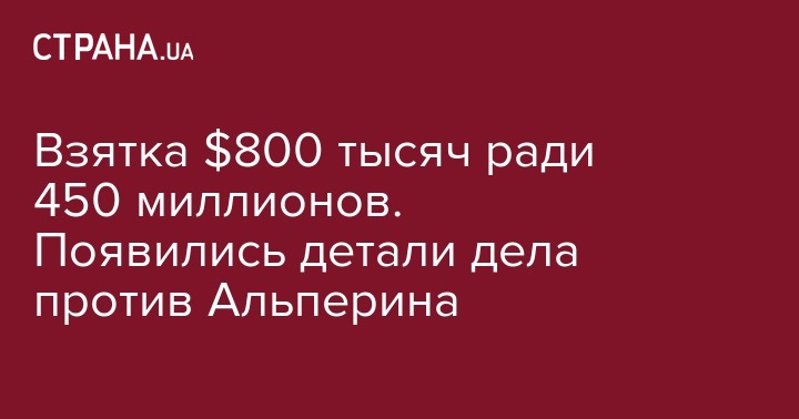 Взятка $800 тысяч ради 450 миллионов. Появились детали дела против Альперина