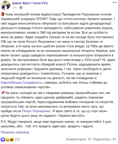 Скриншот: Facebook/Ірина Фріз / Iryna Friz
