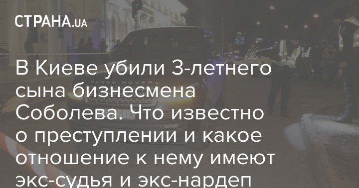 В воскресенье, 1 декабря, в самом центре Киева неизвестные расстреляли машину Range Rover черного цвета. Погиб ребенок, который находился в авто. Позже выяснилось, что это был трехлетний сын донецкого бизнесмена Вячеслава Соболева.