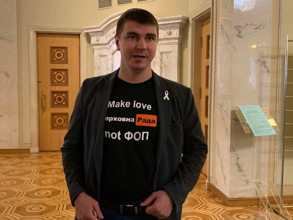 Антон Поляков пришел в Раду в смешной футболке. Фото: Страна.ua