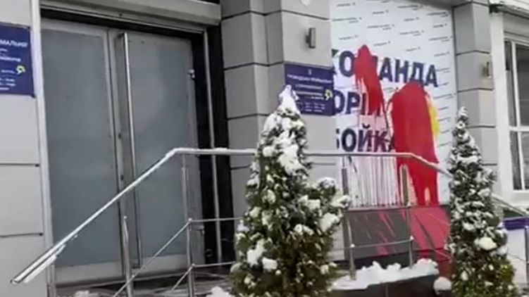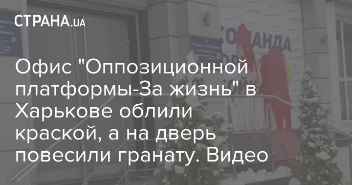 Офис "Оппозиционной платформы-За жизнь" в Харькове облили краской, а на дверь повесили гранату. Видео