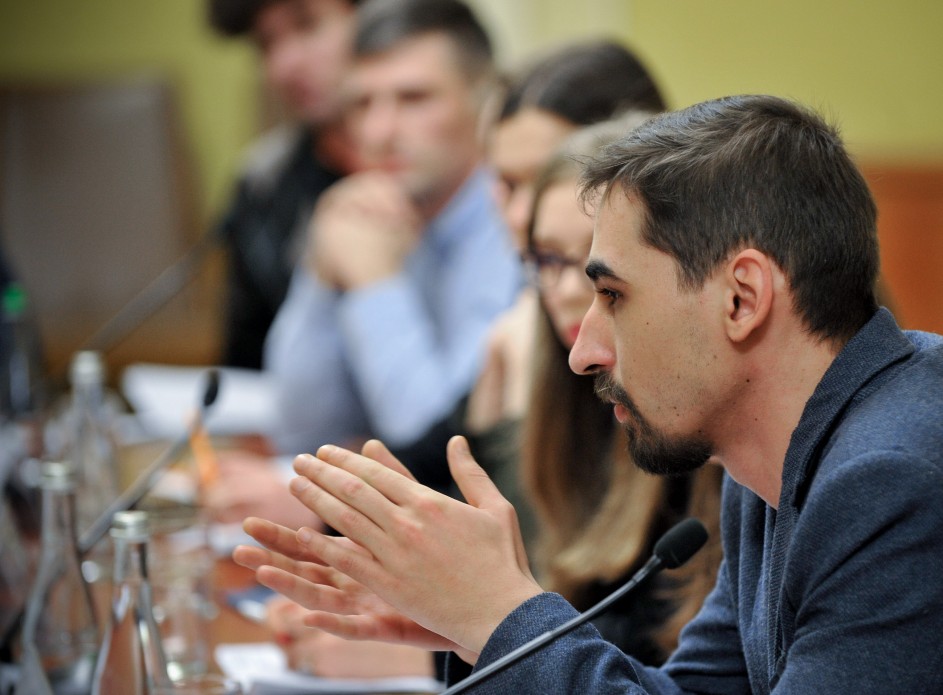 Как и ожидалось, на встречу пригласили "образцовых" идейных участников, которые не только не изменили своего мнения о Майдане, а поехали в АТО или стали волонтерами. Как, например, 28-летнего выпускника истфака института имени Гринченко Виталия Кузьменко, который воевал на Донбассе, а теперь занимается делами ветеранов.