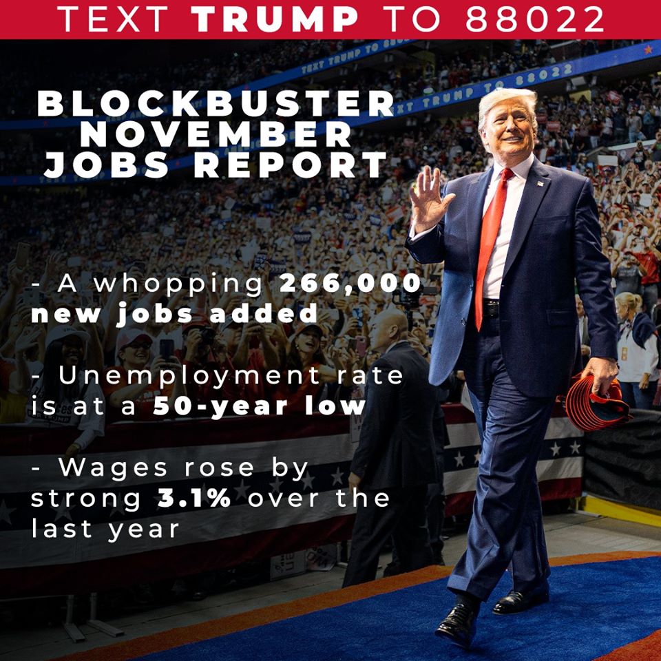 На Facebook странице президента США Дональд Трампа появилась небольшая инфографика об этом. Также на ней говорится о росте заработной платы.