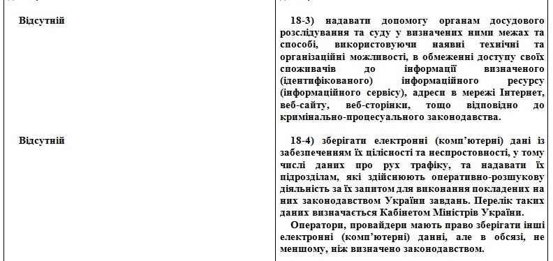 Эти данные провайдеры будут обязаны передавать в "подразделения, которые осуществляют оперативно-розыскную деятельность в порядке, предусмотренном законодательством Украины".