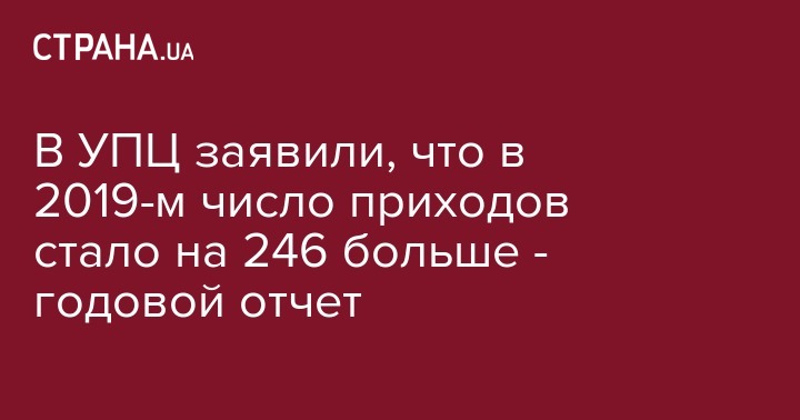 Количество приходов, принадлежащих Украинской Православной Церкви (УПЦ), в 2019 году составило 12 338 единиц, что на 246 приходов или на 2% больше, чем в 2018 году. Об этом сообщает Центр информации УПЦ в Facebook.