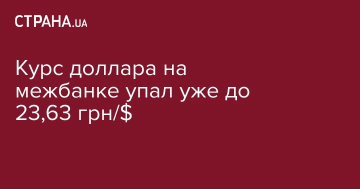 Курс доллара на межбанке упал уже до 23,63 грн/$