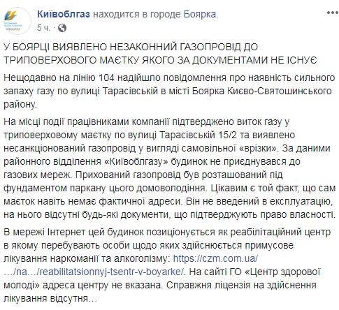 Об инциденте сообщает "Киевоблгаз" на странице Facebook.