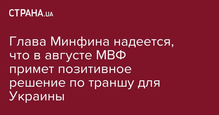 МВФ может принять положительное решение о транше для Украины уже в августе.  Такими ожиданиями поделился министр финансов Александр Данилюк, передает корреспондент "Страны".