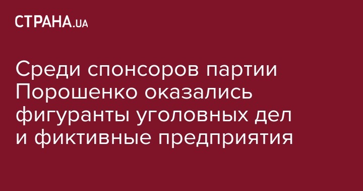 Среди компаний, которые финансировали партию экс-президента Петра Порошенко, оказались фигуранты уголовных производств.