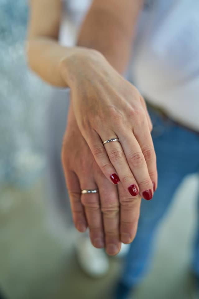На молодых во время церемонии не было традиционных нарядов жениха и невесты. Булатов надел джинсы, кроссовки и футболку с надписью "Торопышка", а Василева - плиссированную юбку и футболку с надписью "Мармеладка".