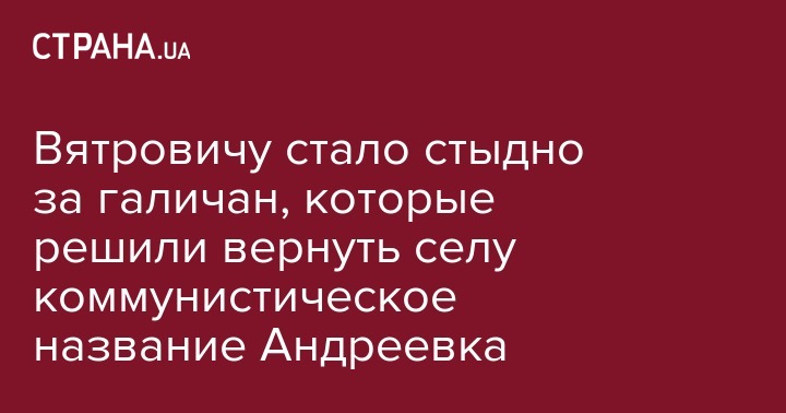 "Стыдно, что мои земляки галичане таким образом могут запустить процесс рекомунизации. Стыдно, что члены общины во главе со священником УГКЦ говорили, что название села не имеет отношения к коммунистам и происходит от апостола Андрея. Завтра кто-то захочет снова Днепр переименовать в Днепропетровск - в честь апостола Петра", - предрек бывший главный в стране по национальной памяти.