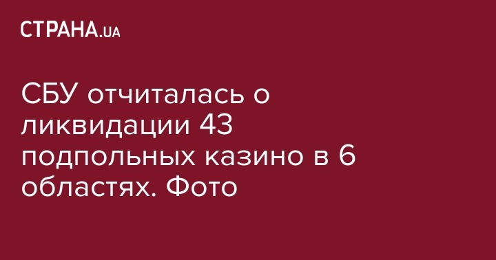 Служба безопасности Украины блокировала работу 43 подпольных казино и игорных заведений. Об этом 20 декабря сообщает пресс-служба СБУ в Facebook.