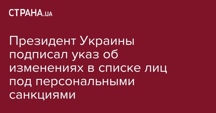 Президент Украины подписал указ об изменениях в списке лиц под персональными санкциями