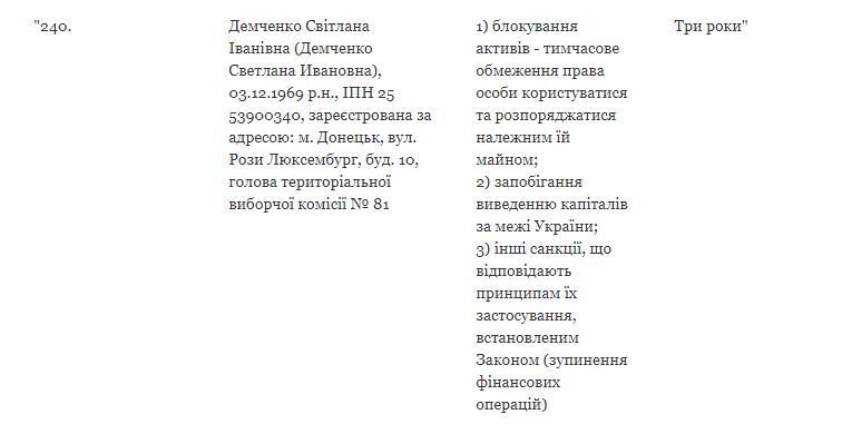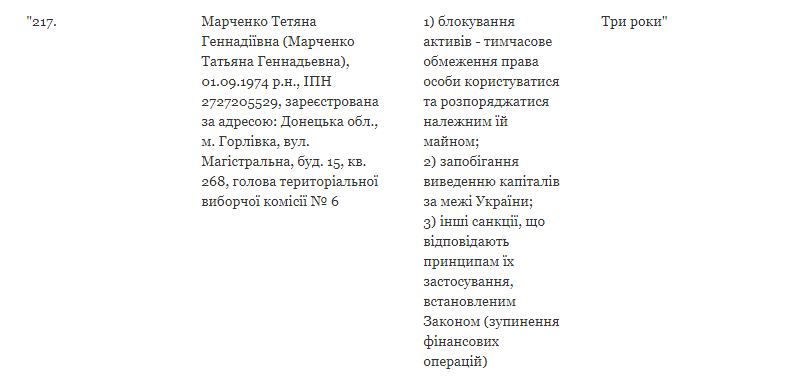 Таким образом, в приложении 1 к решению Совета национальной безопасности и обороны Украины изменены пять лиц, в отношении которых применяются персональные санкции.