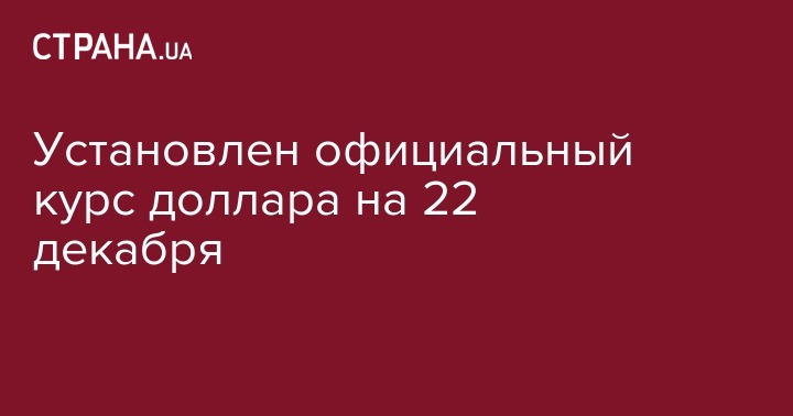 Установлен официальный курс доллара на 22 декабря