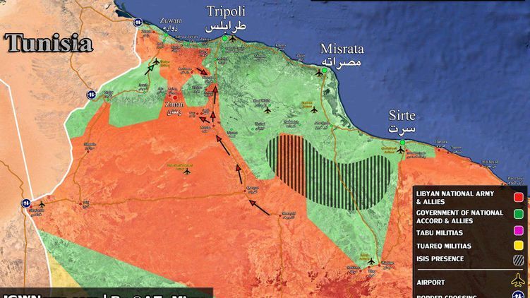 На текущий момент это африканское государство разделено на две части. Восток контролирует Халифа Хафтар (ЛНА), а запад вместе со столицей - премьер Сарадж (ПНС).