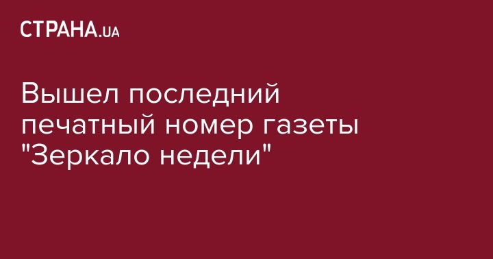 Газета "Зеркало недели", выходившая с 1994 года, выпустила последний номер печатного издания, пишет редакция на сайте ZN.ua.