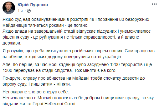 11:40 Экс-генпрокурор Юрий Луценко призвал не отпускать экс-беркутовцев