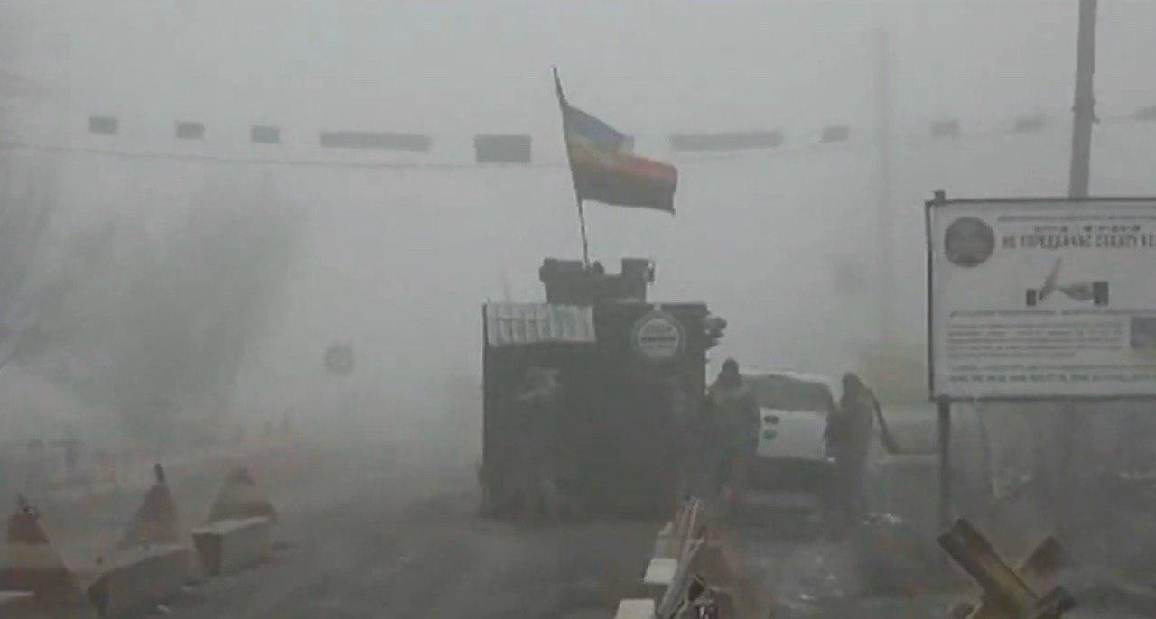 10:57 Российские журналисты сфотографировали красно-черный бандеровский флаг над украинским КПВВ.