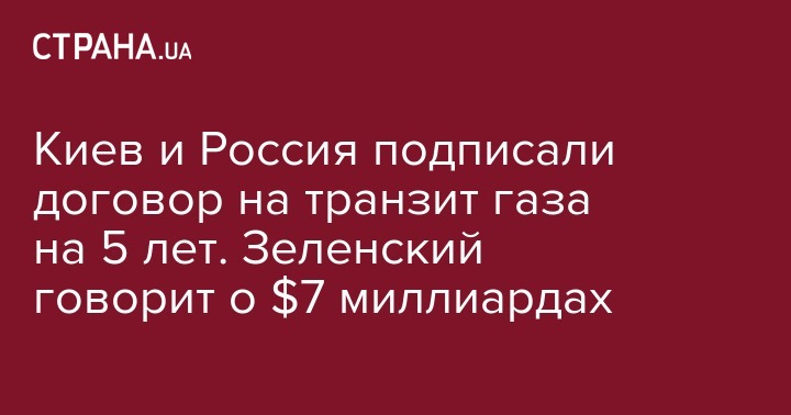 Киев и Россия подписали договор на транзит газа на 5 лет. Зеленский говорит о $7 миллиардах