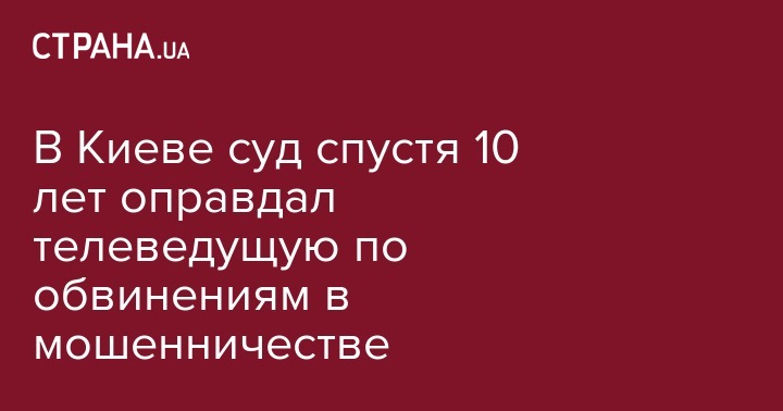 В Шевченковском суде Киева оправдали ведущую "телеканала Киев" Екатерину Брусникину от обвинений в мошенническом завладении средствами, передает "Судебный репортер" со ссылкой на приговор от 19 декабря.