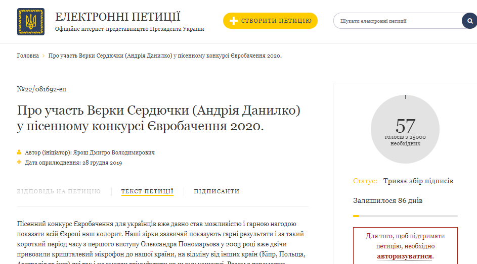 "Песенный конкурс Евровидение для украинцев уже давно стал возможностью и хорошей возможностью показать всей Европе наш колорит. Наши звезды обычно показывают хорошие результаты, и за такой короткий период времени, с первого выступления Александра Пономарева в 2003 году, уже дважды привозили хрустальный микрофон в нашу страну, в отличие от других стран (Кипр, Польша, Австралия и др.), которые так и не смогли победить на этом конкурсе", - говорится в петиции.