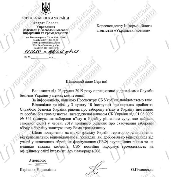 В СБУ рассказали, когда с актера Федора Добронравова сняли запрет на въезд в Украину