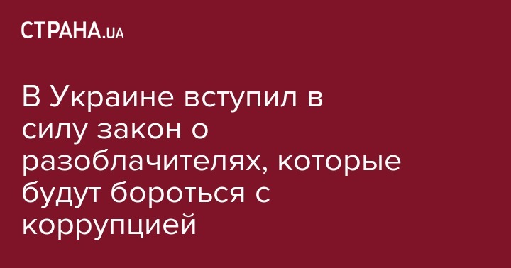 В Украине вступил в силу закон о разоблачителях, которые будут бороться с коррупцией