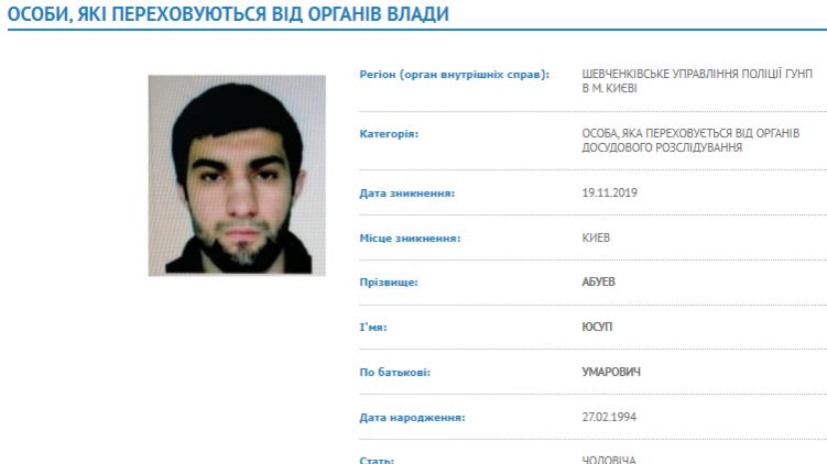 Юсупа Абуева разыскивал Шевченковский райотдел столичной полиции с 19 ноября 2019 года