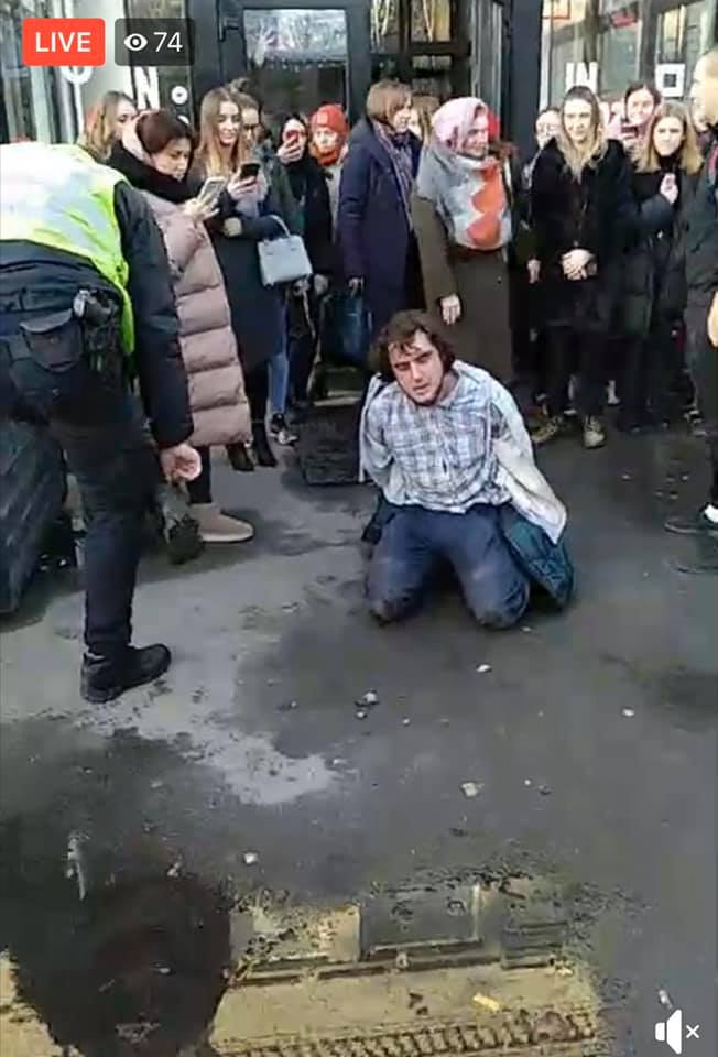 Судя по фото, полиция положила как минимум одного "активиста" на пол, а потом поставила на колени.