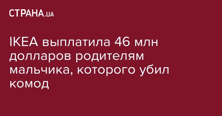 Компания IKEA выплатила 46 млн долларов компенсации родителям 2-летнего мальчика, который погиб от падения на него комода. Об этом сообщает DW.