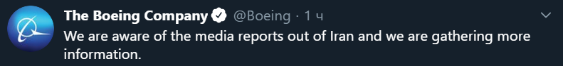 7:49 В Твиттере компании "Боинг" написали, что знают о катастрофе под Тегераном и собирают информацию о ней.