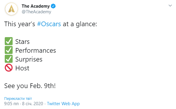 Отметим, что в первый раз "Оскар" оставался без ведущего в 1989 году. Тогда премию раскритиковали за невыносимую скуку и "сырые" выступления звезд.