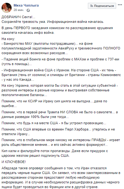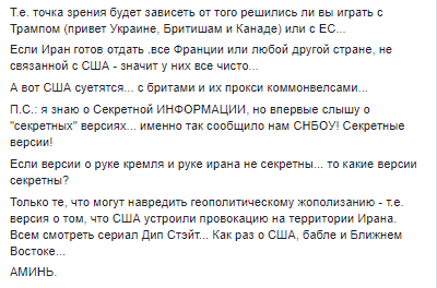 2. Украинская комиссия в Иране еще работает, но у неё каких-либо конкретных данных с места пока нет. А значит нет и оснований для руководителей Украины делать заявления.