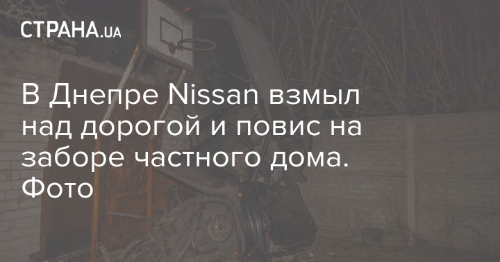В Днепре Nissan взмыл над дорогой и повис на заборе частного дома. Фото