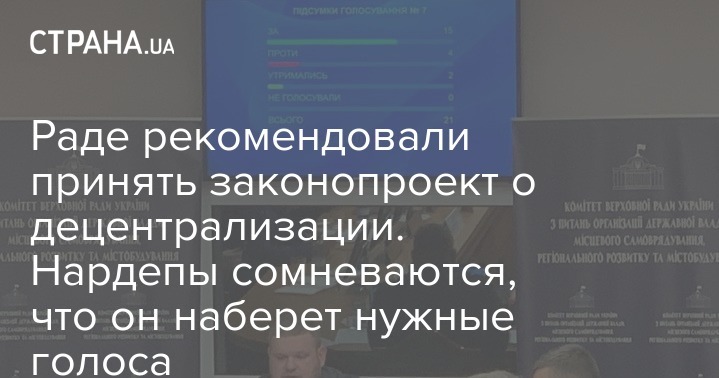 Раде рекомендовали принять законопроект о децентрализации. Нардепы сомневаются, что он наберет нужные голоса