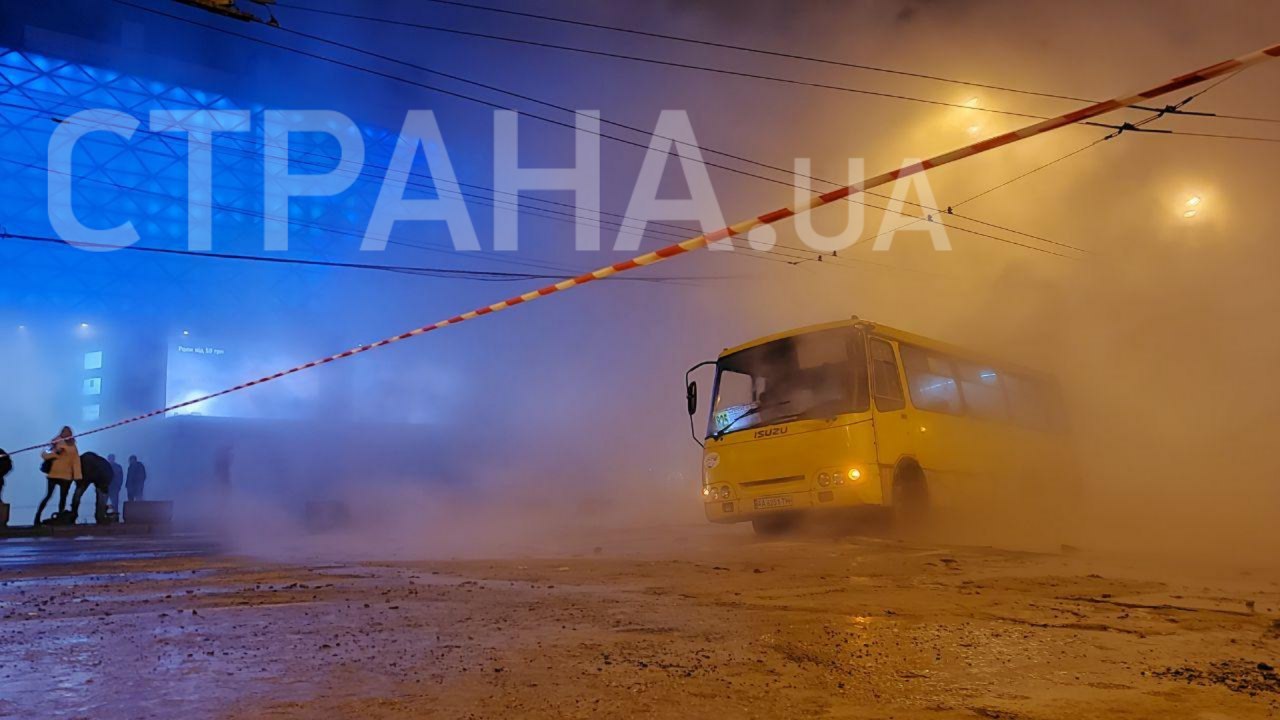Также пары кипятка везде вокруг торгового центра. Киевляне перепрыгивали через огромные горячие лужи.