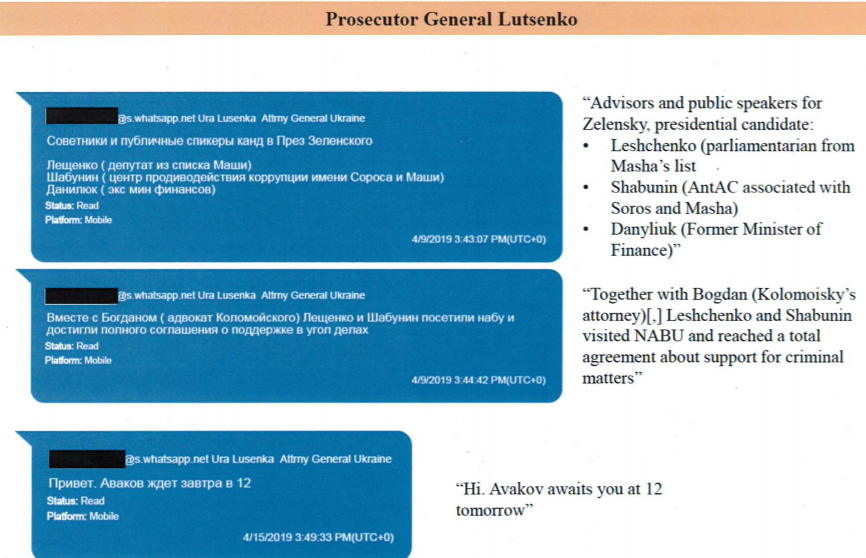 Комитет по разведке Палаты представителей Конгресса США опубликовал переписки бизнесмена Льва Парнаса с командой Владимира Зеленского, генпрокурором Юрием Луценко, шефом МВД Арсеном Аваковым и бизнесменом Игорем Коломойским.