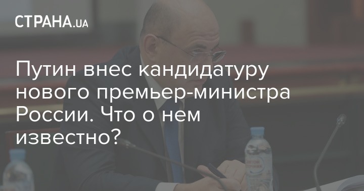 Президент России Владимир Путин предложил кандидатуру Михаила Мишустина на должность премьер-министра.