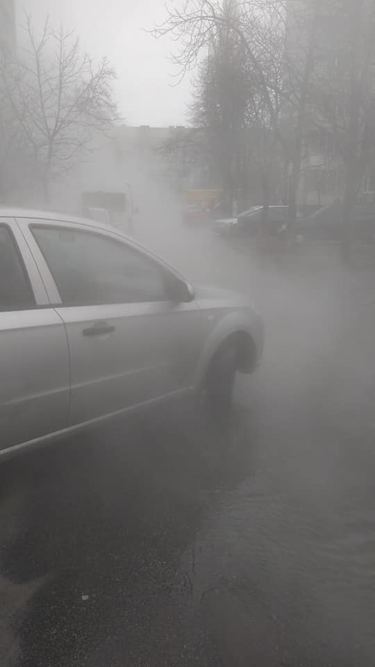 В заколдованном месте на Виноградаре в Киеве прорвало трубу с горячей водой. Фото