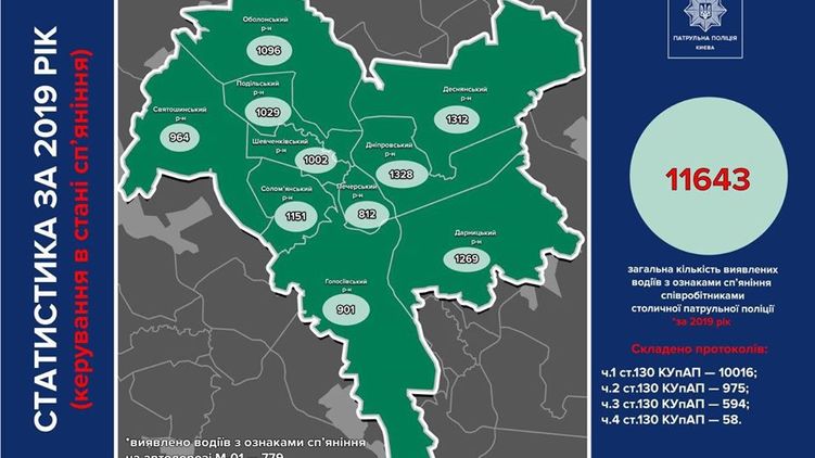 Патрульная полиция Киева опубликовала карту, где на дорогах столицы больше всего пьяных водителей