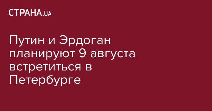 Путин и Эрдоган планируют 9 августа встретиться в Петербурге