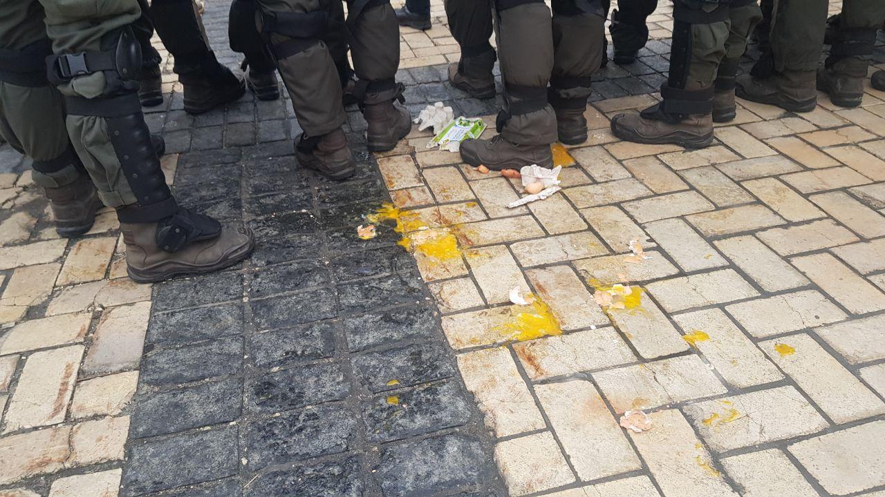 Противники акции стоят за кольцом оцепления. В основном это молодые парни возрастом 17 лет, многие из них - в балаклавах. Во время акции произошла небольшая потасовка - в сторону митинга полетели яйца.