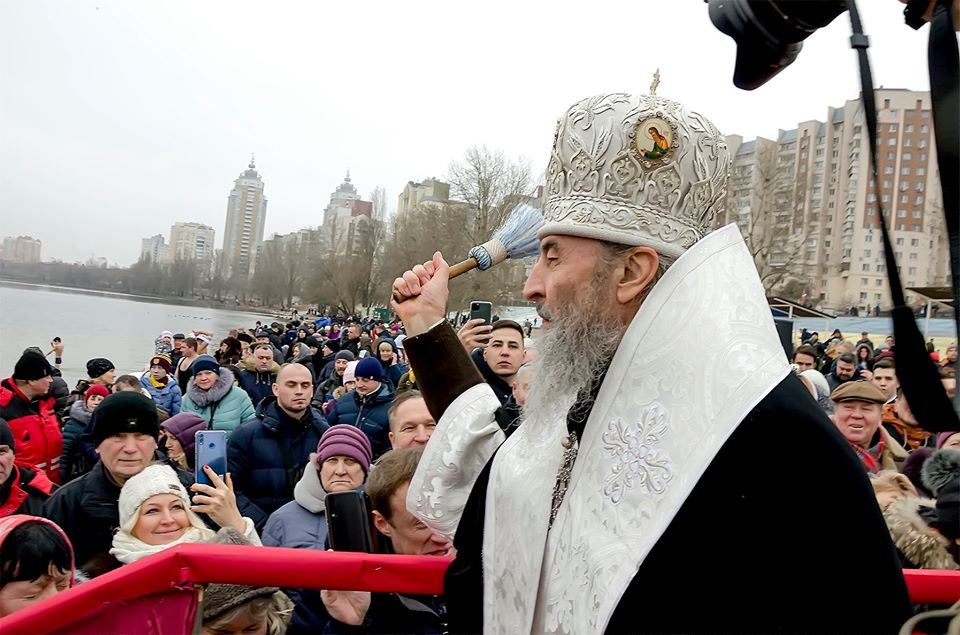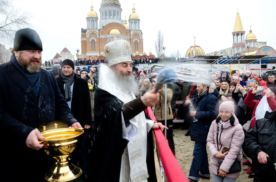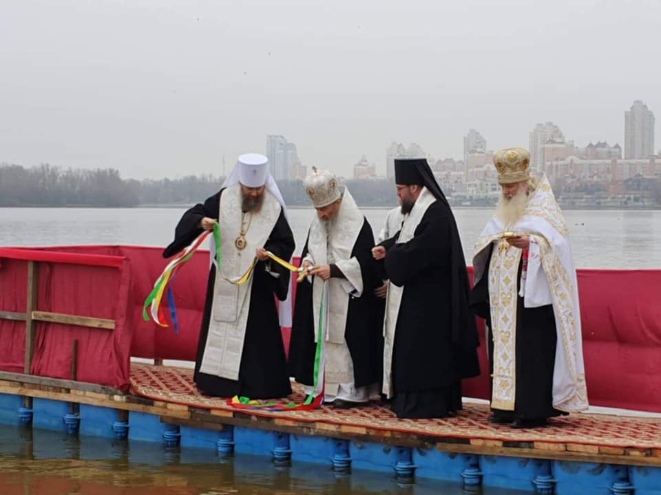 Предстоятель Украинской Православной Церкви Блаженнейший Митрополит Онуфрий освятил воды Днепра возле Свято-Покровского собора в Киеве.