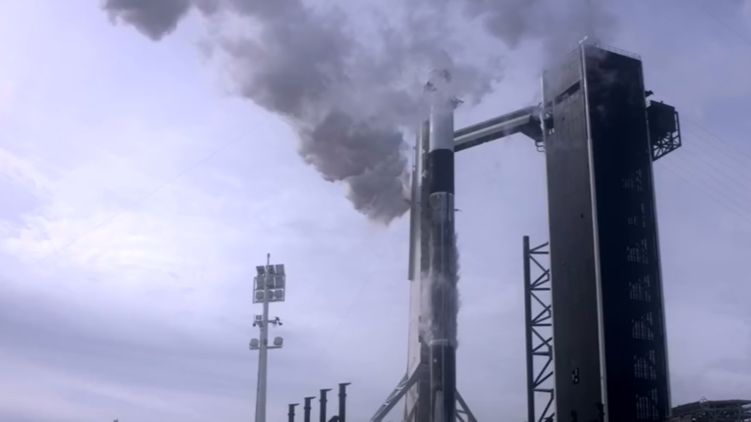 Ракета-носитель Falcon 9 с кораблем Crew Dragon за несколько минут до старта, фото: twitter.com/spacex
