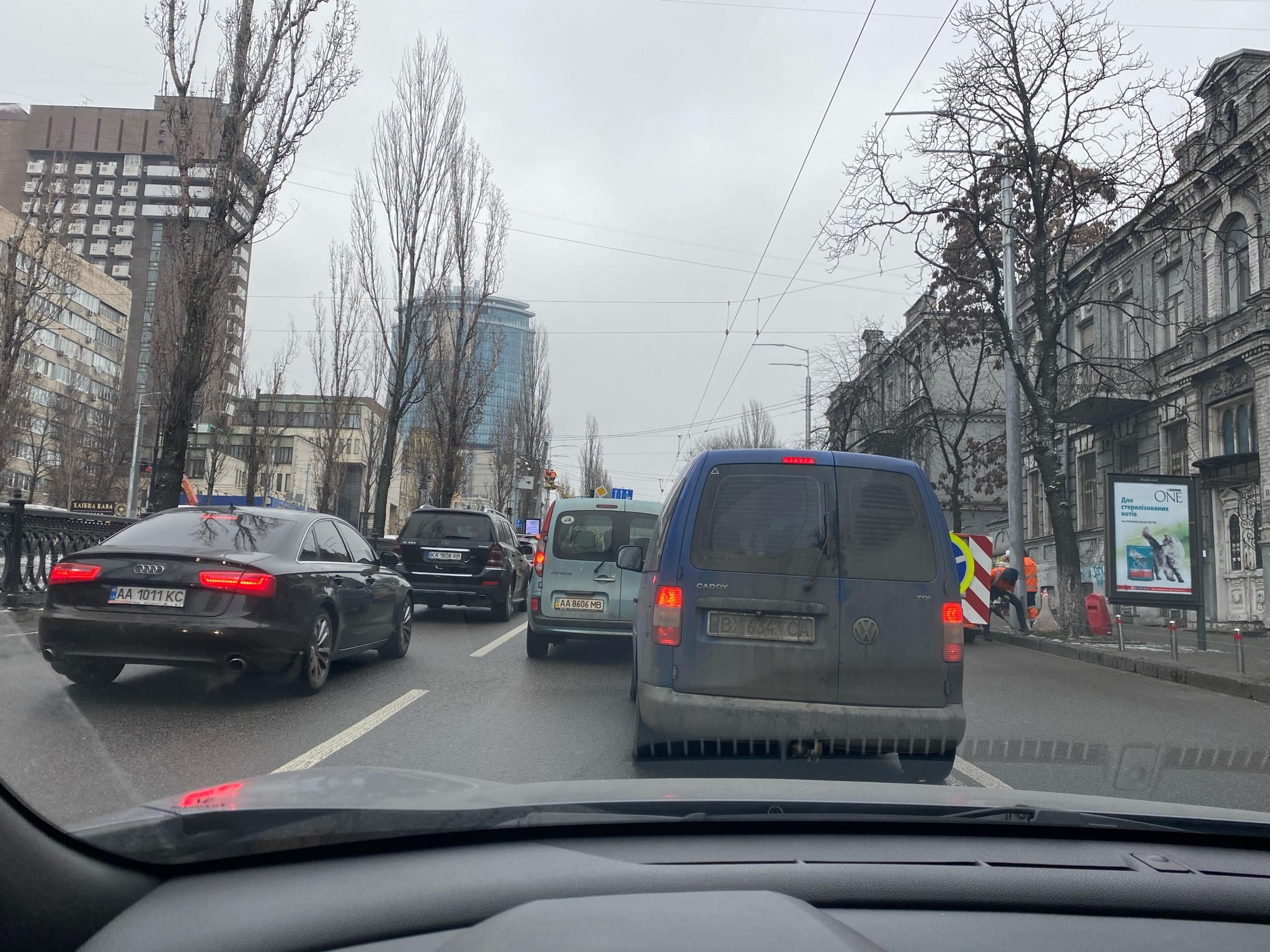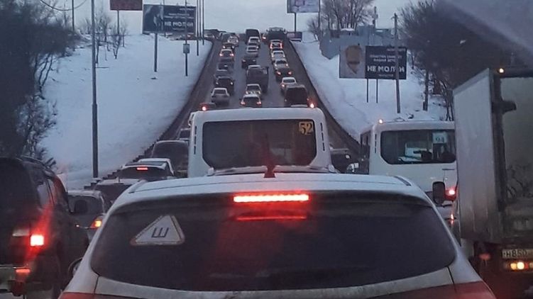 В понедельник утром, 20 января, движение в центре и на левом берегу Киева существенно осложнилось, поскольку часть улиц остановилась в пробках.