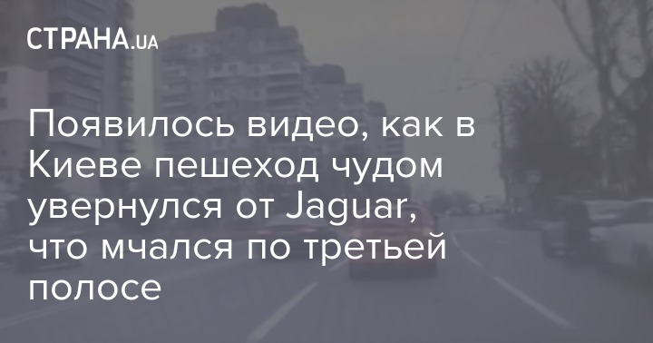 Появилось видео, как в Киеве пешеход чудом увернулся от Jaguar, что мчался по третьей полосе