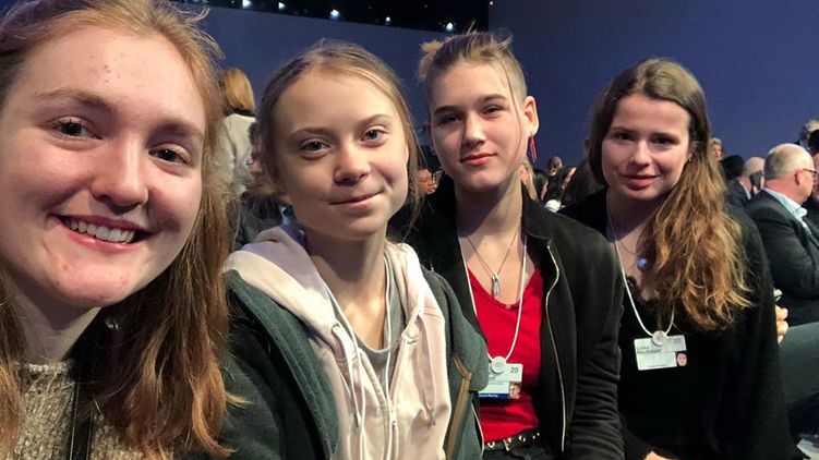 Грета Тунберг в Давосе (вторая слева). Фото: gretathunberg/Instagram