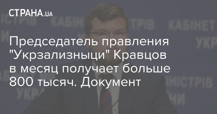 Председатель правления Акционерного общества "Українська залізниця" Евгений Кравцов в 2018 году полкчил почти 10 миллионов зарплаты. Ежемесячно он в среднем получал примерно 812,4 тыс грн.