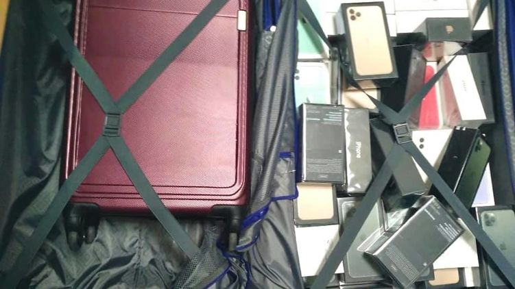 "Во время оформления данных чемоданов в камеру хранения багажа и было выявлено всего сорок четыре iPhone 11 в упаковке, шестьдесят три iPhone 10 без упаковки, шесть iPhone 8 без упаковки и 71 комплект наушников Air Pods Pro", - говорится в сообщении.